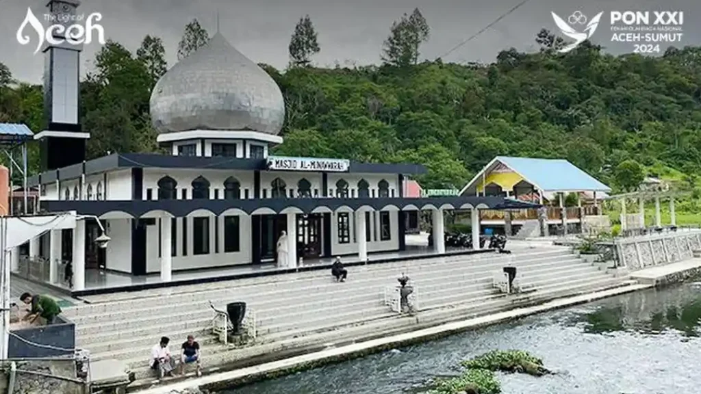Masjid Barid Al Munnawarah di Masjid, Sumatra Barat, menjadi bukti bahwa keindahan arsitektur Islam tidak hanya berpusat di Jawa. Dibangun pada 2010, masjid empat lantai ini memadukan gaya Timur Tengah dan Minangkabau: limas bertingkat, ukiran kayu, serta kubah berlapis emas yang memantulkan cahaya matahari. Letaknya di ketinggian 1.200 mdpl menawarkan panorama Bukit Barisan dan Danau Singkarak, menjadikannya magnet wisata religi. Selain menjadi tempat ibadah, masjid ini menjadi pusat kajian dan pendidikan Islam, memperkuat identitas Muslim Minang yang berkelanjutan.