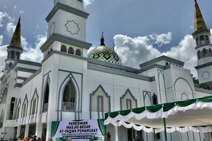 Masjid Besar At-Taqwa Pemangkat di Kabupaten Sambas, Kalimantan Barat, berdiri megah sebagai simbol toleransi dan keindahan arsitektur Islam Nusantara. Dibangun dengan desain limas Melayu yang menyatu dengan ornamen khas Dayak, masjid ini tidak hanya menjadi pusat ibadah umat Islam setempat, tetapi juga destinasi wisata religi yang memikat. Keunikannya terletak pada kubah berlapis emas serta menara setinggi 45 meter yang menghadap ke Selat Karimata. Setiap tahun, ribuan jamaah dari berbagai daerah berduyun-duyun menyambut Ramadan di kompleks seluas 2 hektar ini, menjadikannya ikon penting masjid di Indonesia.